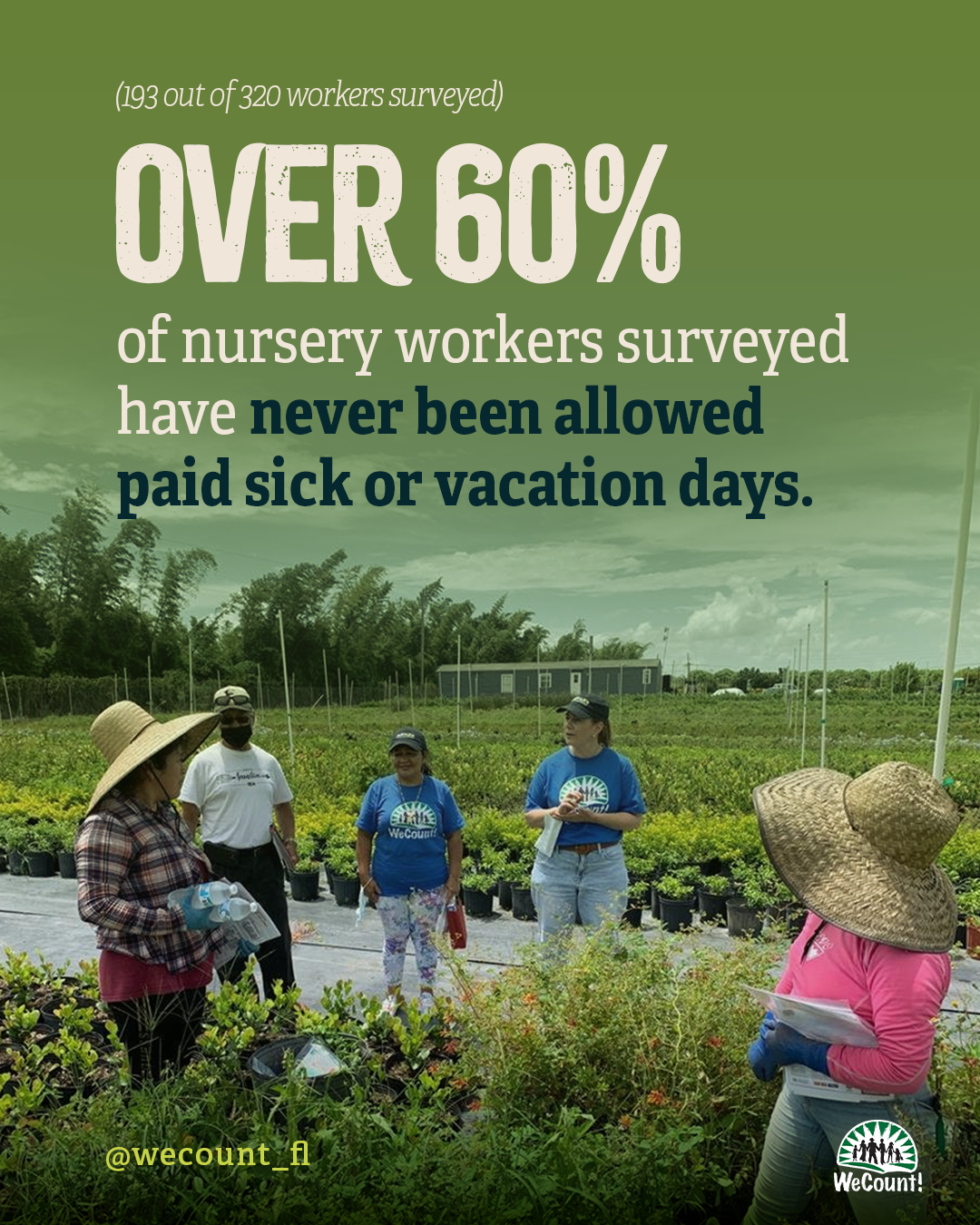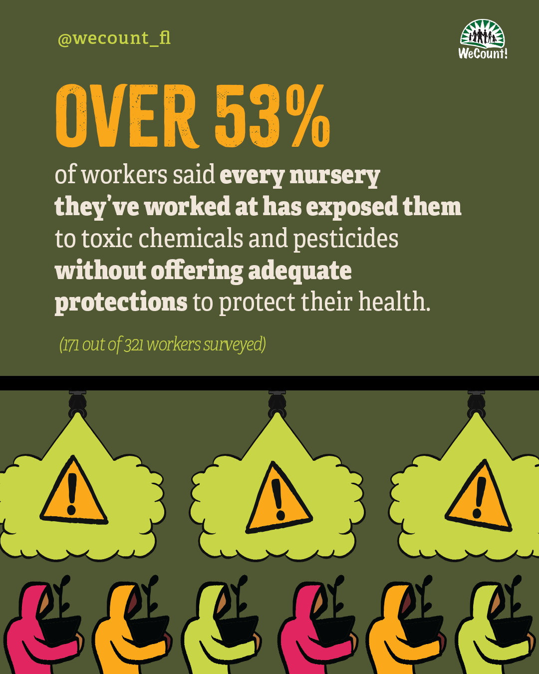 Most of these workers are immigrants from Latin America and the Carribbean, and the majority are women. Despite working in a billion-dollar industry, plant nursery workers in Florida are facing a human rights crisis that remains largely invisible to the average consumer, including poverty wages, lack of benefits, sexual harassment and violence, dangerous exposure to pesticides, and lack of protections from extreme heat. We are organizing to transform the industry and win safe and dignified working conditions for all plant nursery workers.